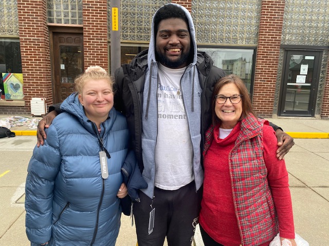 We also met George who had attended Dinner Church and his girlfriend Madison. We learned that sadly the house that they were living in was burned down by an arsonist and they lost all their possessions. Knowing that they needed clothing, we went to pick up clothes we had stored at Westminster Community Center, and brought them warm clothes.